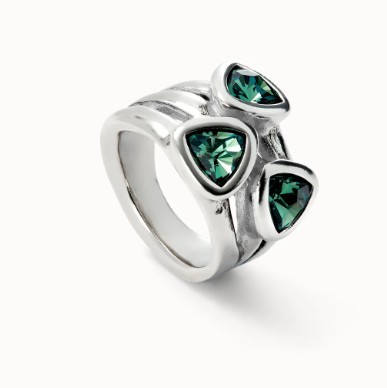 Anello placcato argento Sterling con tre cristalli verdi - UNO DE 50
