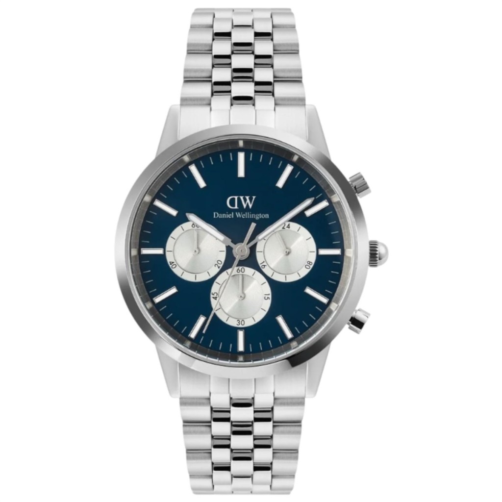 Orologio uomo Daniel Wellington della collezione Iconic Chronograph realizzato con cassa in acciaio color silver con un diametro di 42 mm che racchiude un quadrante blu con indici color silver, che garantisce un look pulito e intramontabile. Protetto da un resistente vetro minerale, offre una resistenza all'acqua di 5 ATM.Il design viene completato da un solido cinturino in acciaio color silver con chiusura deployante con doppio pulsante, che assicura comfort, praticità e massima sicurezza al polso.Un segnatempo versatile, perfetto da indossare ogni giorno o nelle occasioni più eleganti, che unisce precisione e stile.