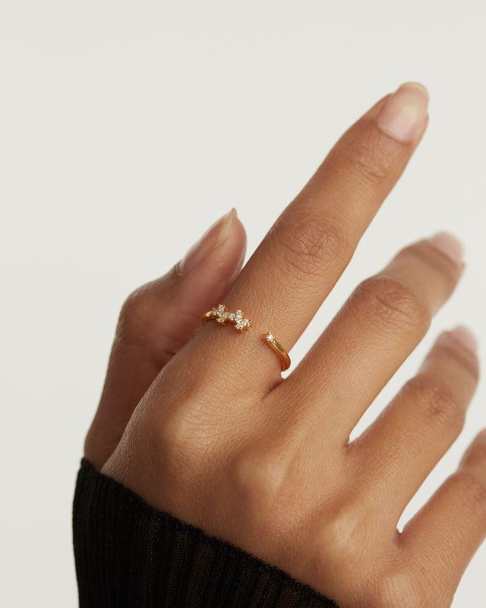 Anelli, orecchini, collane e bracciali realizzati in argento sterling con placcatura in oro giallo 18 carati che possono essere abbinati ad altri articoli o indossati da soli.