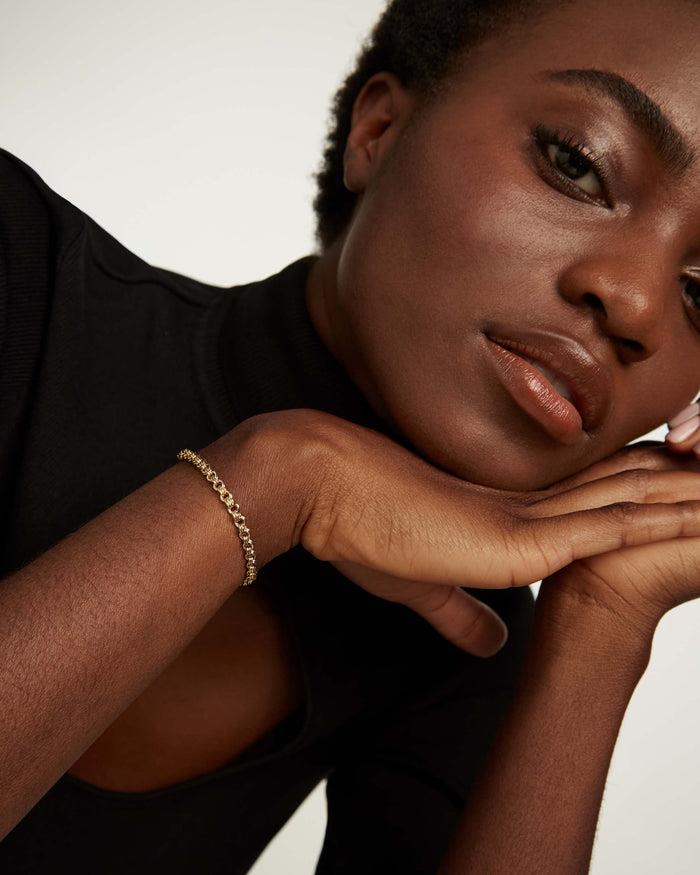 MATERIALE: Argento Sterling 925 FINITURA: Placcatura In Oro 18K PIETRE: Zircone Bianco SPESSORE DELLA CATENA: 4 Mm LUNGHEZZA CATENA: Chiusura Regolabile Da 14 Cm A 18 CmPESO: 7.8g