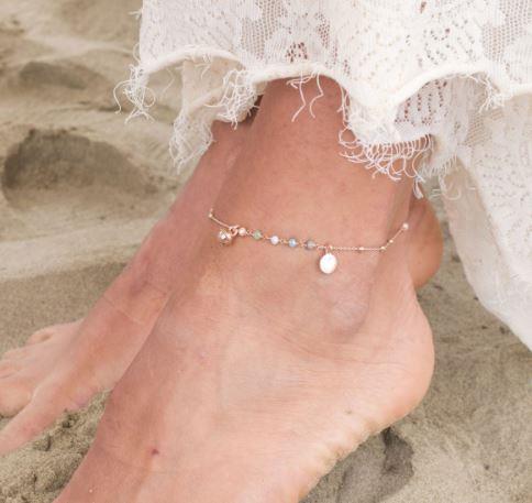 Cavigliera incatenato pietre miste pastello, 1 medagliette e 1 campanelllinoSoggetto medaglietta: cuoreFinitura disponibile: Placcatura oro rosa 18ktMateriale: Argento 925Taglia: Unica, 22 cm + 3 cm