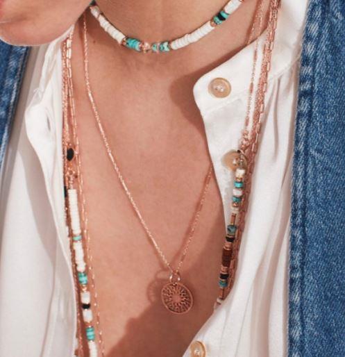 Girocollo lungo della Collezione Il Sole SS21.Il girocollo presenta una piastra con sole centrale di 13 mm.Il girocollo è realizzato in argento 925 con galvanica oro rosa ad alto spessore e resistenza.La lunghezza è fissa di 52 cm non regolabile.Chiusura a moschettone.