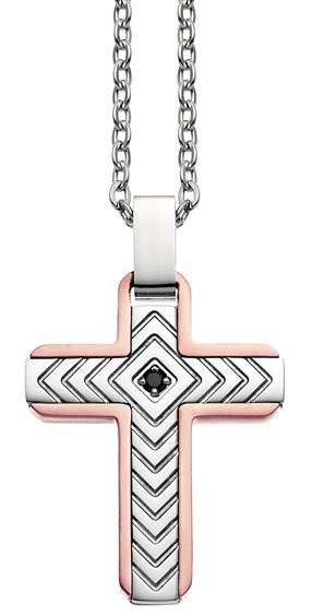 Collana Zancan da uomo con croce Rosata.Consegnata con scatola originale e garanzia ufficiale.Il gioiello è completamente realizzato a mano in Italia.