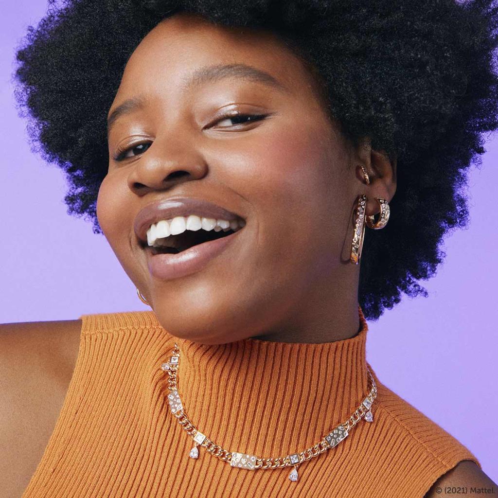 Girocollo con catena groumette bold, placca in argento bagnato in oro 18 kt intervallato da luminose pietre cubic zirconia bianco con tagli e sfaccettature diverse e pendenti con pietra taglio gocciaAbbiamo incontrato la bambola più famosa di sempre e avuto l’onore di trasformare i suoi gioielli in una collezione speciale da indossare.Rue des Mille x BarbieJust As You Are , Così come seiMateriale: Argento 925, cubic zirconia tagli variFinitura disponibile: galvanica oro giallo 18 ktLunghezza: 41 cmNichel freeFatto in Italia, con amore