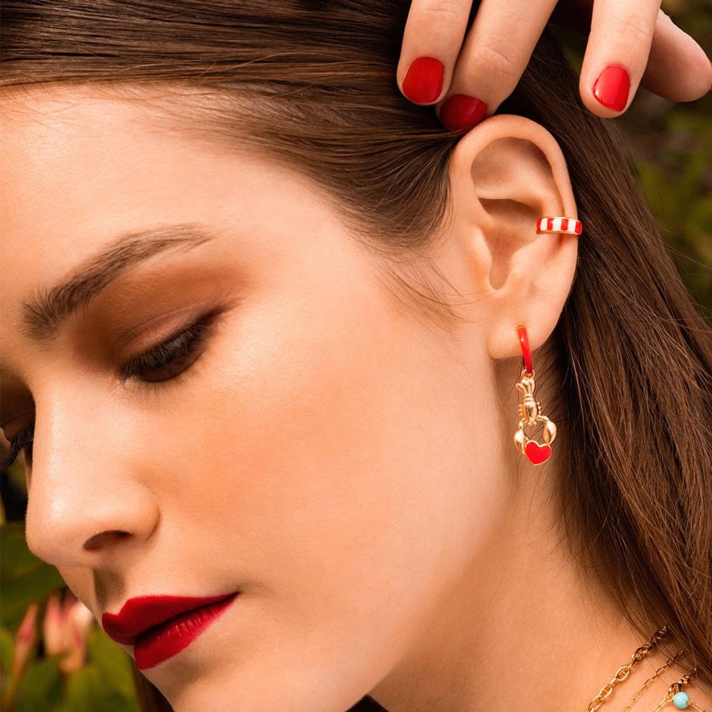 Mono-orecchino cerchietto smaltato rosso con soggetto Aragosta.L'aragosta rubacuori è uno dei soggetti principali della capsule collection Marine Love di Rue des Mille disegnata in collaborazione con il designer Alessandro Enriquez.Materiale: Argento 925Finitura disponibile: oro giallo 18KtDimensione soggetto: 2,3cmDiametro cerchietto: 1cmNichel freeFatto in Italia, con amore