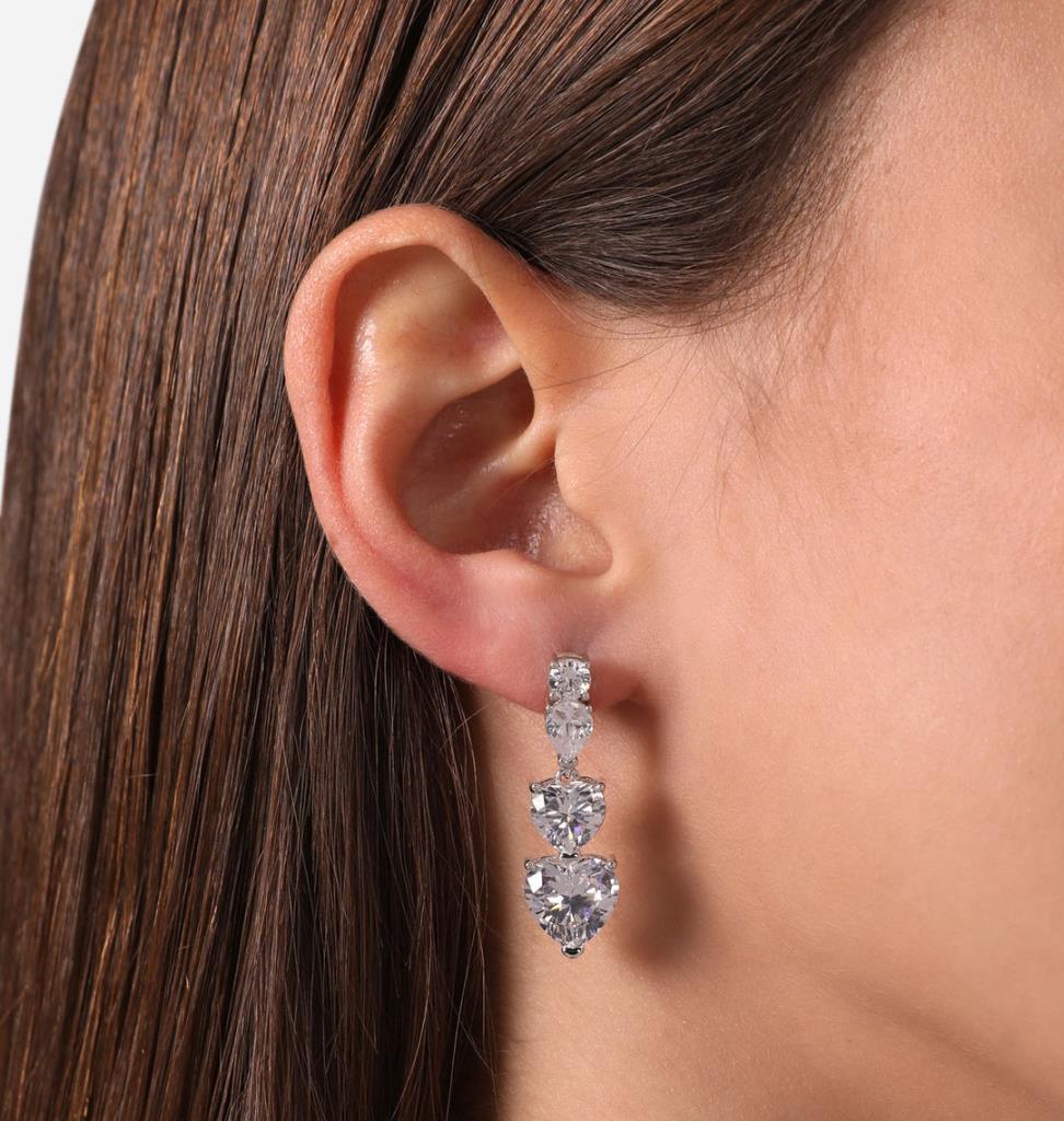 Orecchini pendenti in Rodio con zirconi bianchi a forma di cuore. Dim. 30.5 mm.Venduto in una speciale confezione brandizzata Chiara Ferragni.SKU #J19AUV27_EARRINGS_3WHITEHEART_UNI