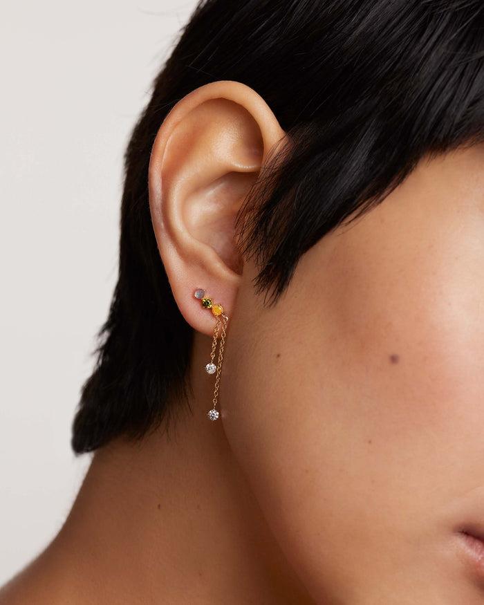 MATERIALE: Argento sterling 925 FINITURA: Placcatura in oro 18k PIETRE: Labradorite, iced zirconia gialla, zirconia verde, zirconia bianca DIAMETRO PIETRE: 3 mm PESO: 1.95 mm*La tonalità delle pietre semipreziose potrebbe variare leggermente a causa della loro origine naturale