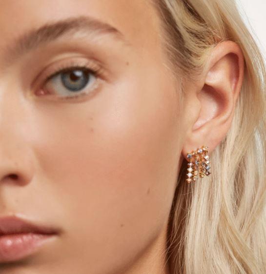 Orecchini Willow in argento dorato e pietre multicolor. Realizzati in argento 925 °% con galvanica oro giallo 18 kt, questi orecchini si inseriscono alla perfezione nel concept della collezione Five firmata PDPAOLA. La collezione prende il nome dai 5 colori di pietre utilizzate per i gioielli che le appartengono: corindone blu zaffiro, zaffiro rodolite, zirconia champagne, zirconia giallo oro e zirconia bianco puro.