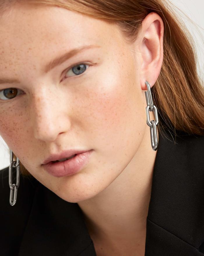 FINITURA: Placcatura in argento rodiato SISTEMA DI CHIUSURA: Vite tradizionale LUNGHEZZA: 5,5 cm PESO: 27,27gAbbracciando la sofisticatezza in un ambiente selvaggio e misterioso, gli orecchini in Argento Muze sono l’unione di delicatezza e carattere in un design cosmico e brillante. Scintille eterne in un gioiello elegante e pregiato. Un legame permanente alla libertà rende questo gioiello ambito ed elegante, con una placcatura in argento rodiato. Un design ricolmo di moderno minimalismo in una collezione che rappresenta l’eterna dualità della donna di oggi: libera, sognatrice e lottatrice.